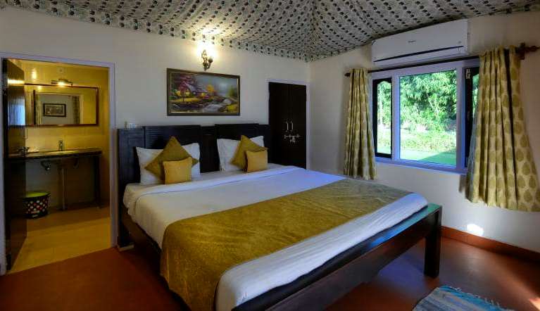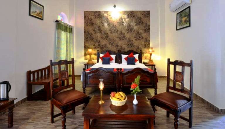The hotel is situated in close proximity to Ranthambore National Park, making it a convenient stay option for wildlife safari visitors. - What types of rooms are available at the hotel?